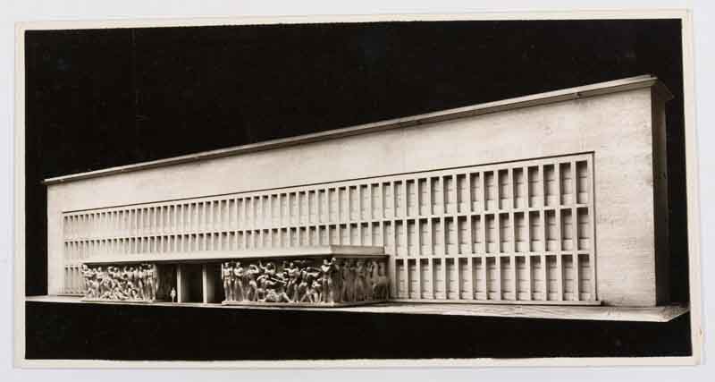 "Ich sende Ihnen eine Mappe mit 45 Fotos und einen kurzen Lebenslauf. Ich habe darin bewusst darauf verzichtet, auf meine Belastung im dritten Reich [sic!] Bezug zu nehmen, es kommt mir langsam zum Halse heraus. Ihnen zur Unterrichtung und damit Sie auf eventuelle Fragen antworten können, noch einmal die Sache auf das richtige Maß gebracht: So lange ich selbständig arbeite, waren meine Auftraggeber Architekten. Die eigentlichen Auftraggeber kannte ich meist nicht oder nur am Rande. Ich frug nicht nach ihrer Religion oder Weltanschauung. Nach Erledigung des Auftrages vergaß ich sie sowieso. Was mich interessierte, war die formale Lösung der im Zusammenhang mit dem Bau gestellten Aufgabe und das beglückende Zusammenarbeiten mit befreundeten Architekten. Politisch war ich nicht interessiert und erst recht nicht engagiert. [...] Bei uns wurde weiter vom Bau gesprochen und nicht von Politik. [...] 1938 wurde ich [...] zum Professor ernannt. Man nenne mir denjenigen, der die Annahme des Titels verweigert hätte. Außerdem hatte ich durchaus das Gefühl, und habe es heute noch, den Titel verdient zu haben."